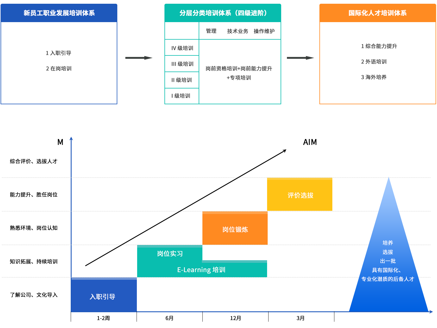 在搭建員工自主學習平臺的基礎上,建立了以支撐公司戰(zhàn)略發(fā)展為宗旨,以滿足企業(yè)發(fā)展和個人需求為導向,以提升員工專業(yè)能力、創(chuàng)新能力和綜合素質為重點的戰(zhàn)略型、階梯式培訓開發(fā)體系。